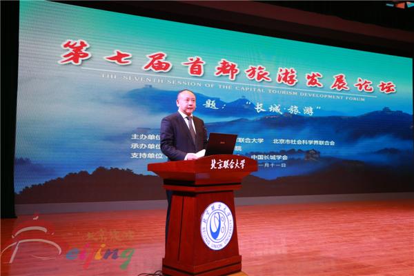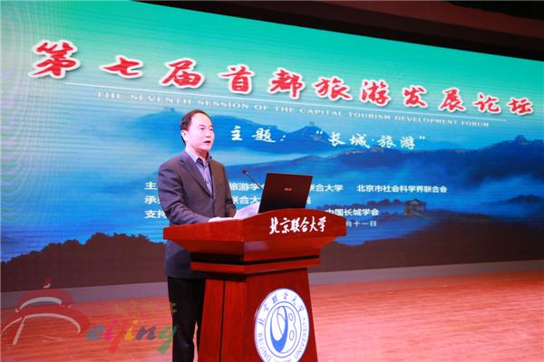 由北京旅游学会、北京联合大学、北京市社会科学界联合会联合主办,北京联合大学旅游学院承办的第七届首都旅游发展论坛,2017年11月11日在北京联合大学旅游学院成功举办。此次论坛以“长城·旅游”为主题,特邀相关部门和企业负责人、旅游界专家深入剖析长城文化带的旅游发展,开展相关交流与探讨,力求通过政产学相互交流融合方式,对北京的文化旅游和京津冀旅游一体化起到桥梁和纽带作用。bet365官网体育宋宇主任,北京联合大学李学伟校长,旅游学院党委书记曹长兴分别致辞。bet365官网体育副主任、北京旅游学会会长安金明,北京联合大学旅游学院常务副院长严旭阳,中国长城学会副会长董耀会等分别主持了论坛和圆桌论坛。