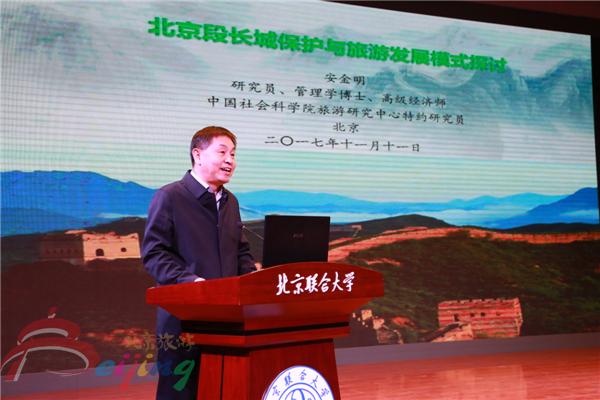 北京旅游学会会长、北京市政协委员、中国社会科学院旅游研究中心特约研究员安金明在“北京段长城的管理与经营模式探讨”主旨演讲环节中回顾了其早在2005年就进行的北京段长城管理模式的研究。他认为,应鼓励和支持以现有八达岭为基础的正在进行的改制为长城国家公园,逐步逐年形成对北京段甚至全国其它长城实行国家公园管理模式。推动北京段573公里长城两侧二公里内核心区的保护利用规划,形成1146平方公里长城遗产地保护区。北京段长城应实行“五统一”管理保护(统一保护、门票、标识、营销、管理),以长城为品牌分段推动系列工程。