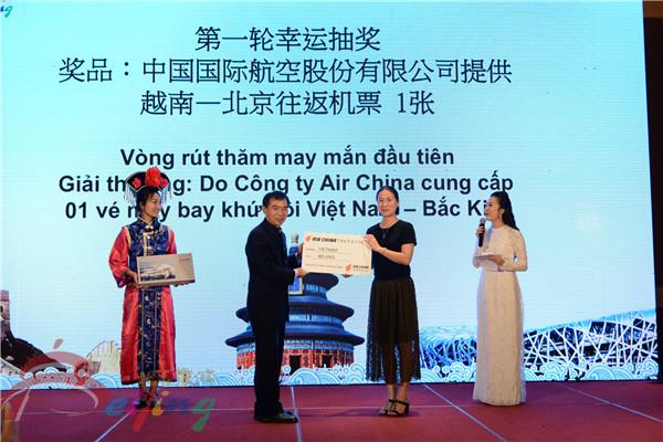 由中国国际航空公司提供的河内—北京往返机票、由中旅国际会议展览有限公司提供的北京旅游三日体验游的抽奖活动将推介会气氛推到高潮。