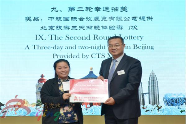 (北京市旅游委执法大队大队长祝学庆先生为幸运嘉宾颁奖)